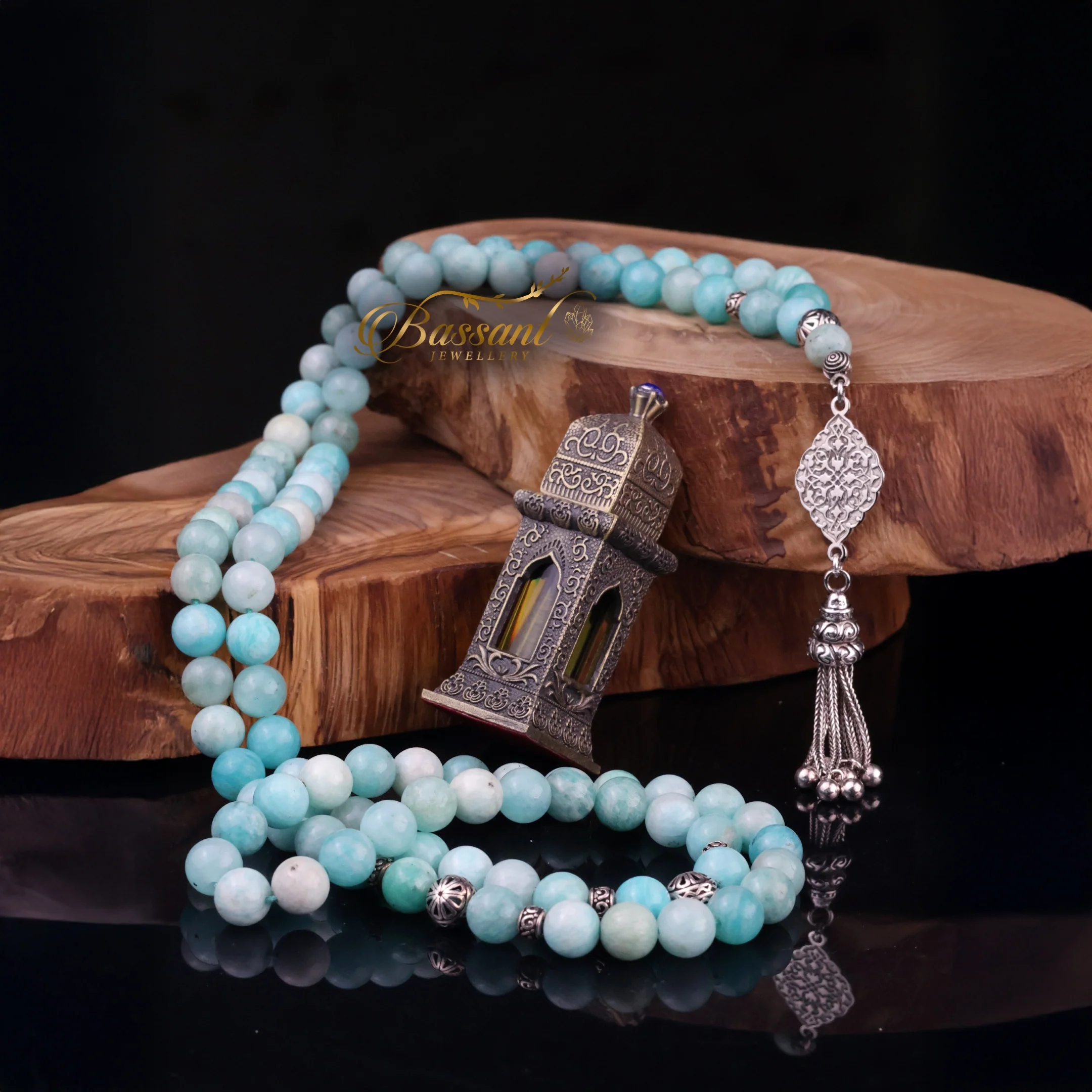 This rosary is meticulously crafted with the utmost precision, combining exceptional artistry and timeless elegance. The stunning Amazonite gemstone, paired with 925k sterling silver, creates a mesmerizing fusion of beauty and craftsmanship. Each bead of Amazonite is carefully selected for its unique color and texture, making each rosary a one-of-a-kind masterpiece.