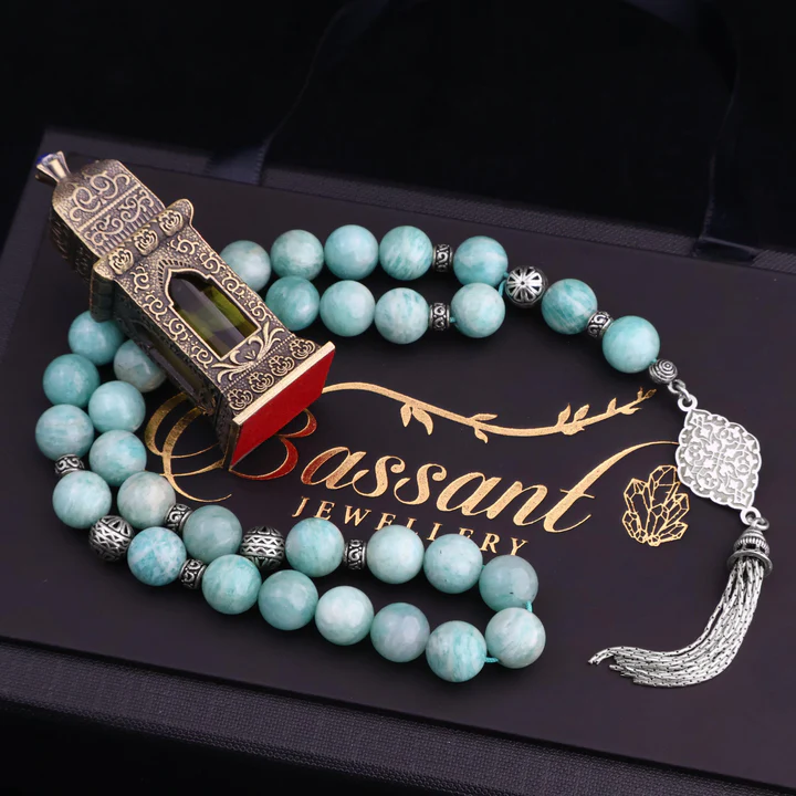 This rosary is meticulously crafted with the utmost precision, combining exceptional artistry and timeless elegance. The stunning Amazonite gemstone, paired with 925k sterling silver, creates a mesmerizing fusion of beauty and craftsmanship. Each bead of Amazonite is carefully selected for its unique color and texture, making each rosary a one-of-a-kind masterpiece.